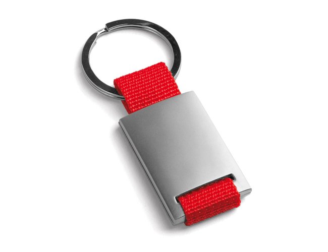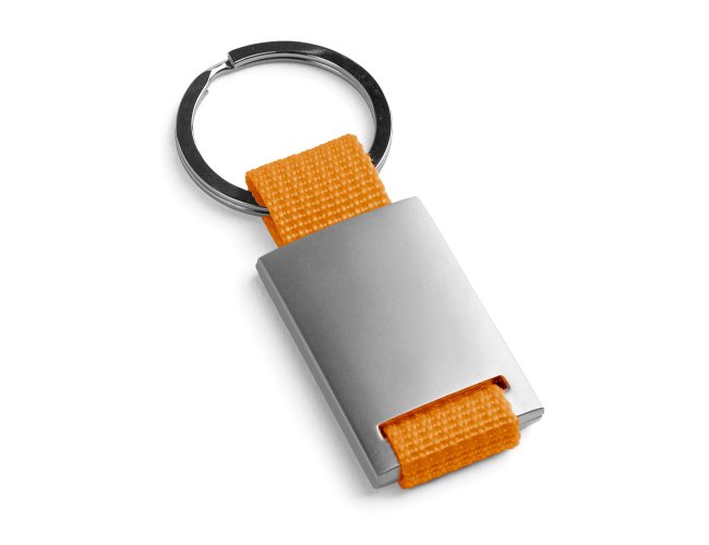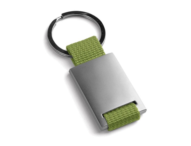 Chaveiro em metal e em webbing. Fornecido em caixa presente de papel kraft reciclado.