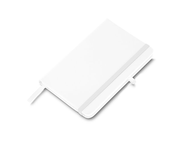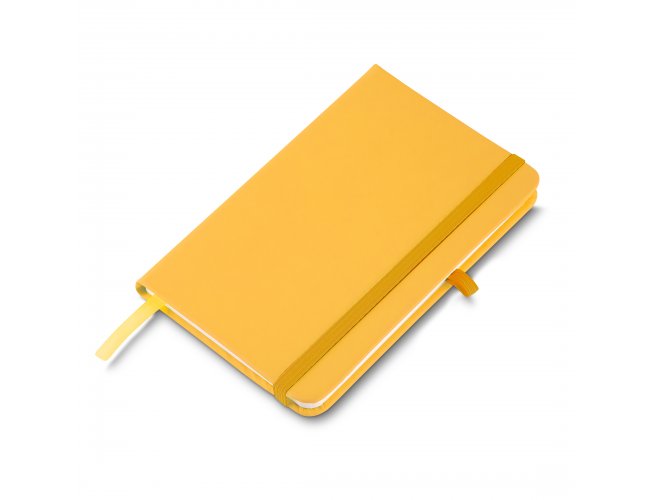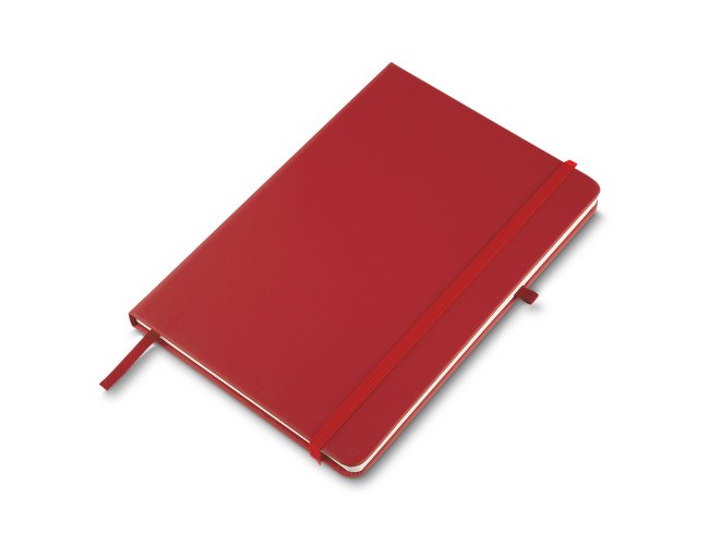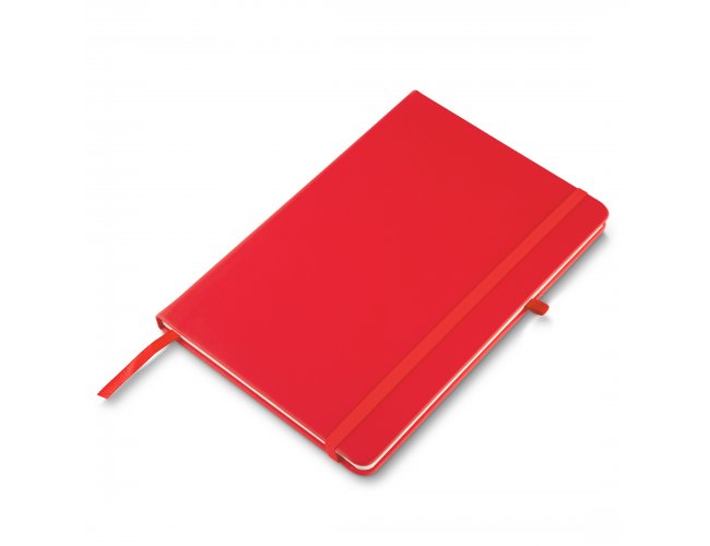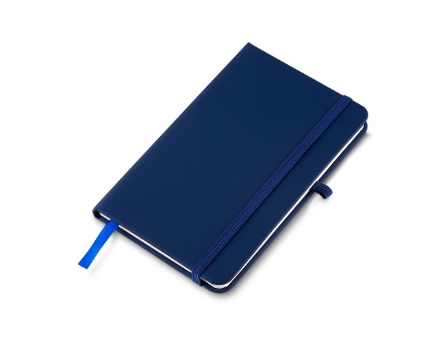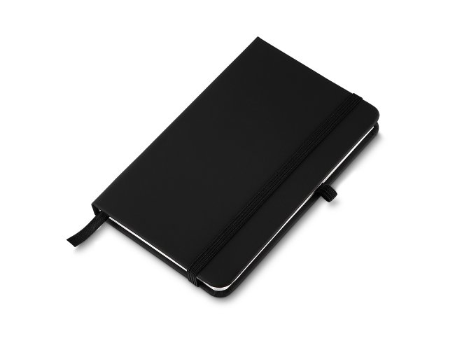 Caderno capa dura. C. sintético. Com porta esferográfica e 80 folhas pautadas.