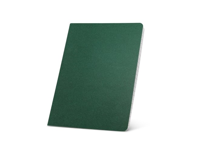Caderno A5 com 40 folhas pautadas e capa flexível em cartão.