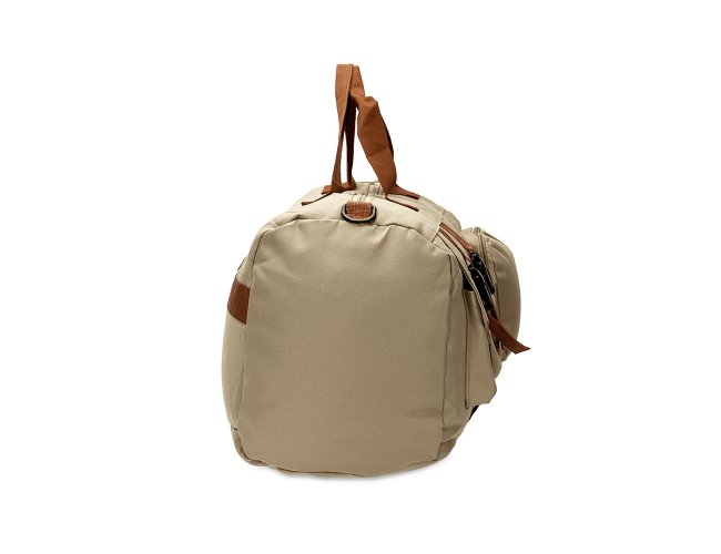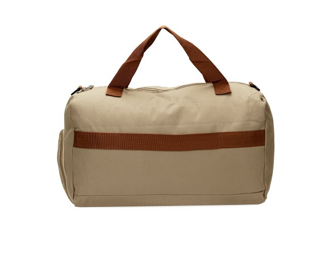 Bolsa confeccionada em Oxford impermeável, fechamento em zíper e capacidade para até 23L. Possui compartimento interno com dois bolsos em tamanhos diferentes. Conta ainda com um par de bolsos frontais, sendo um com fechamento em zíper e outro aberto com fivelas compressoras, além de faixa posterior para acoplar em puxadores de malas. Acompanha alça transversal ajustável.