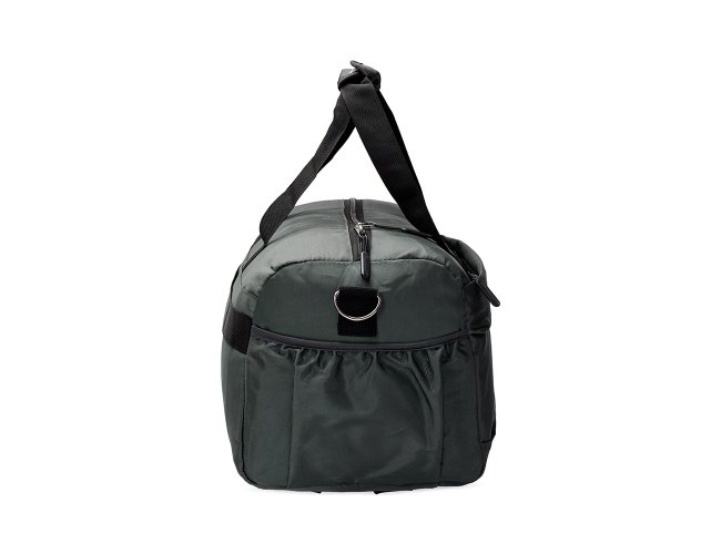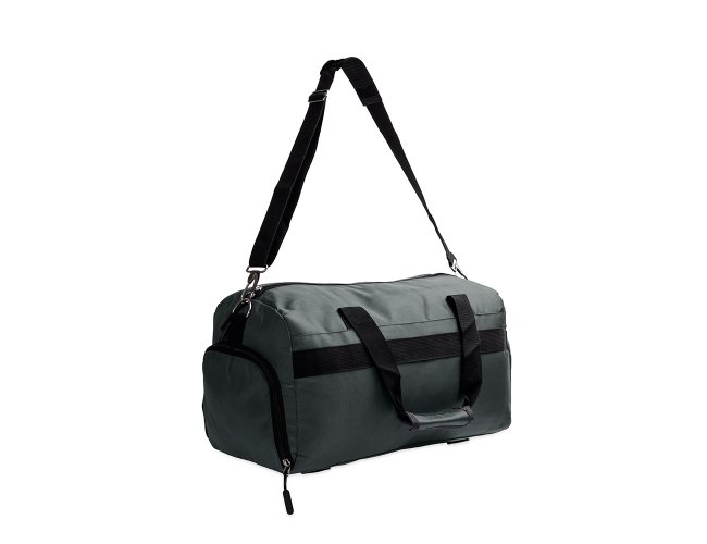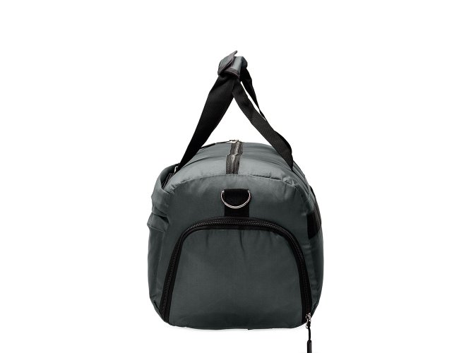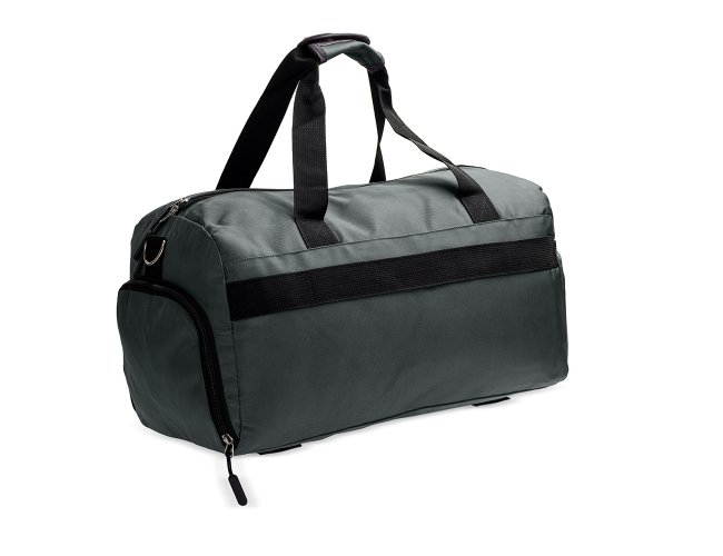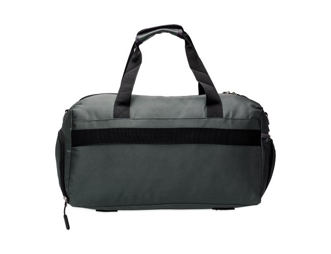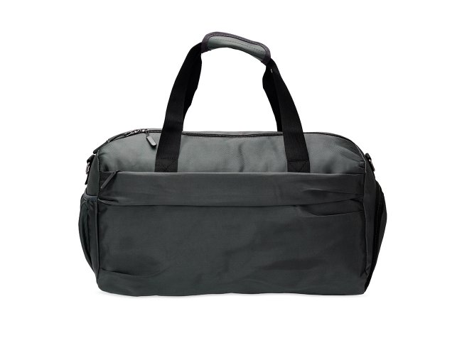 Bolsa confeccionada em Oxford resistente à água com fechamento em zíper e capacidade para até 27 litros. Possui compartimento lateral para tênis, bolso frontal com revestimento em PVC para guardar itens úmidos e faixa posterior para acoplar em malas. Conta ainda com duas alças fixas em nylon e suporte de juntura. Acompanha alça transversal ajustável.