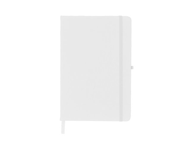 Caderneta emborrachada com porta caneta elástico em nylon, marcador de página em cetim e fita elástica de nylon para fechar. Contém aproximadamente 80 folhas pardas pautadas. Tam. 21,2x14,5x1,4cm