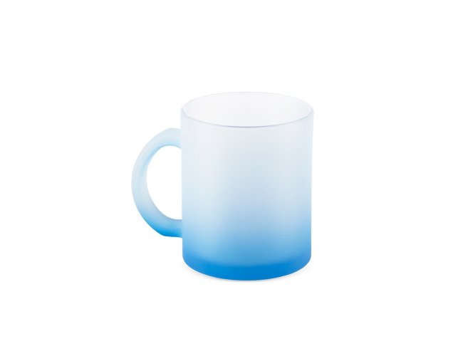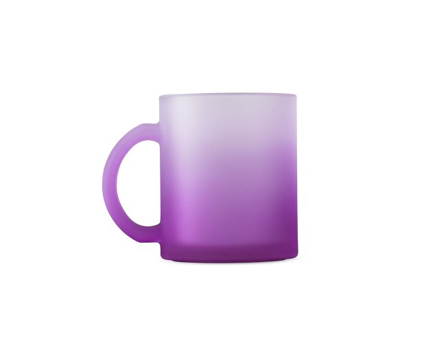 Caneca em vidro com acabamento fosco degradê e capacidade para até 350ml.