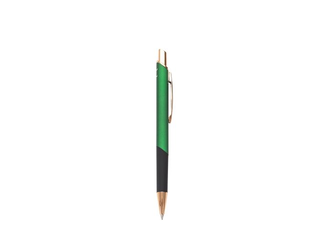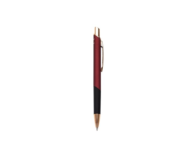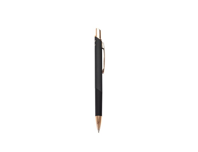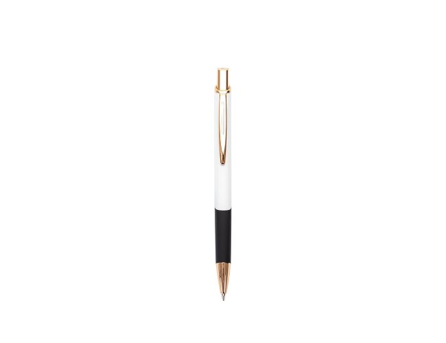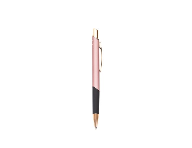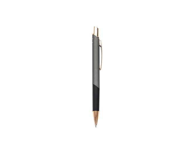 Caneta feita inteiramente em metal com acionamento por clique e carga esferográfica azul de 1,0mm.