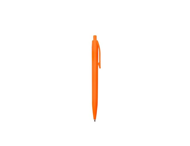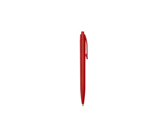 Caneta feita inteiramente em plástico. Conta com acionamento em por clique e carga esferográfica azul de 1.0mm.