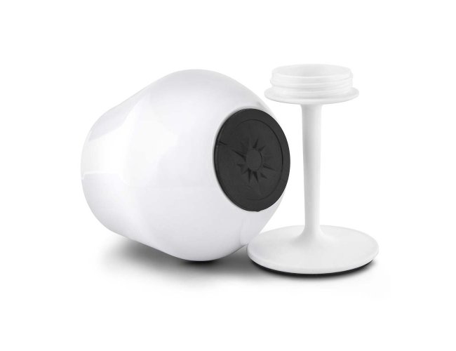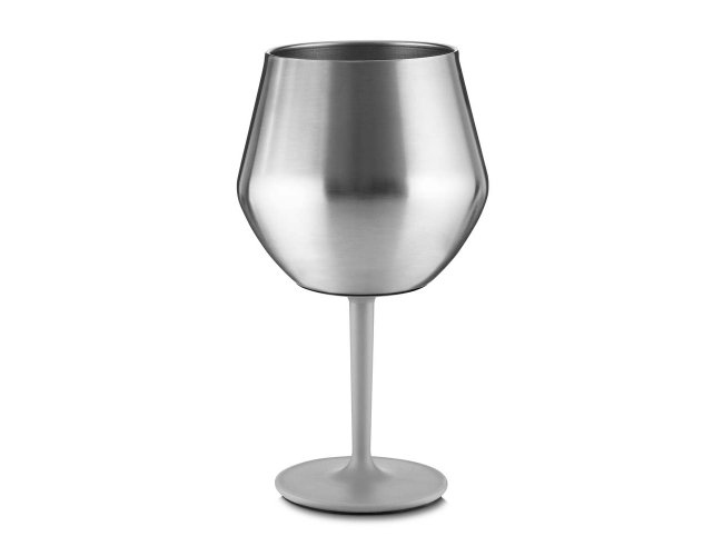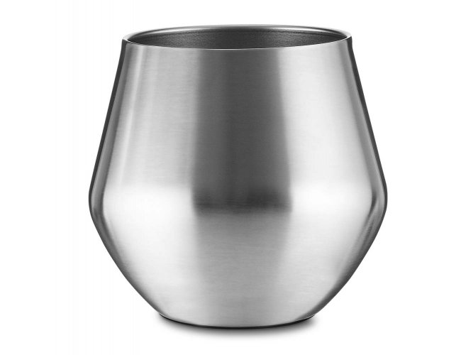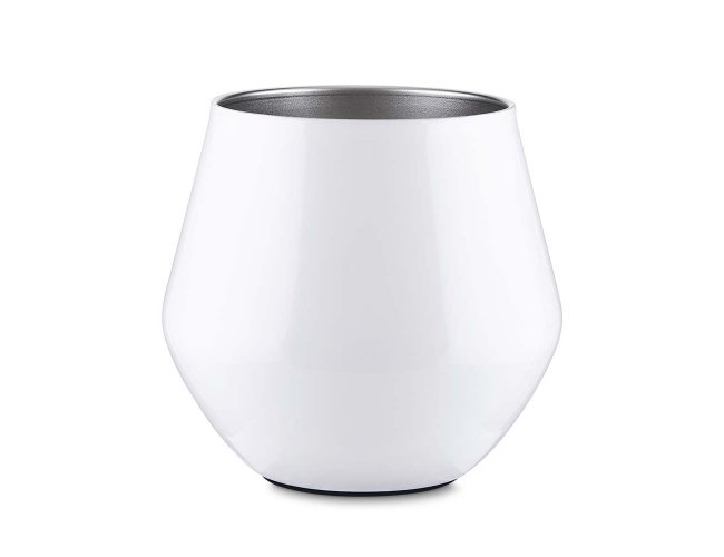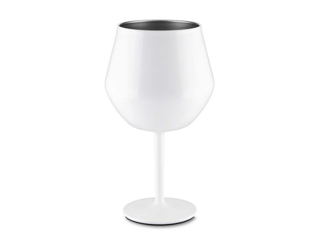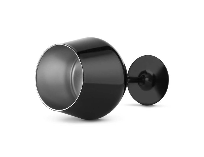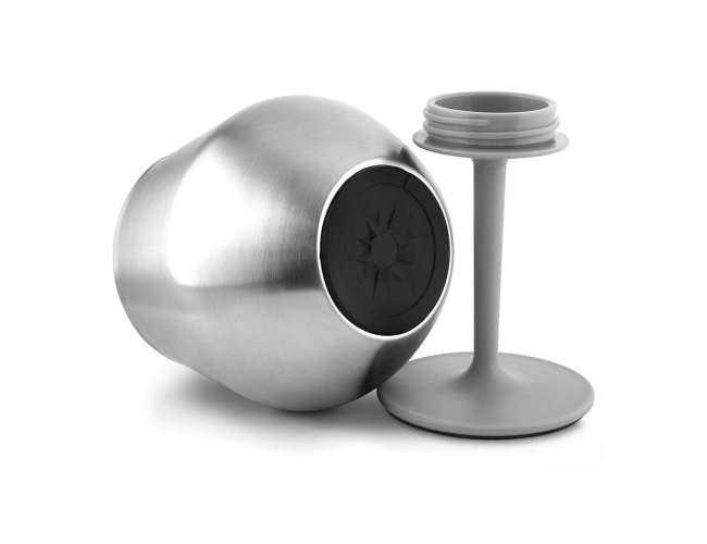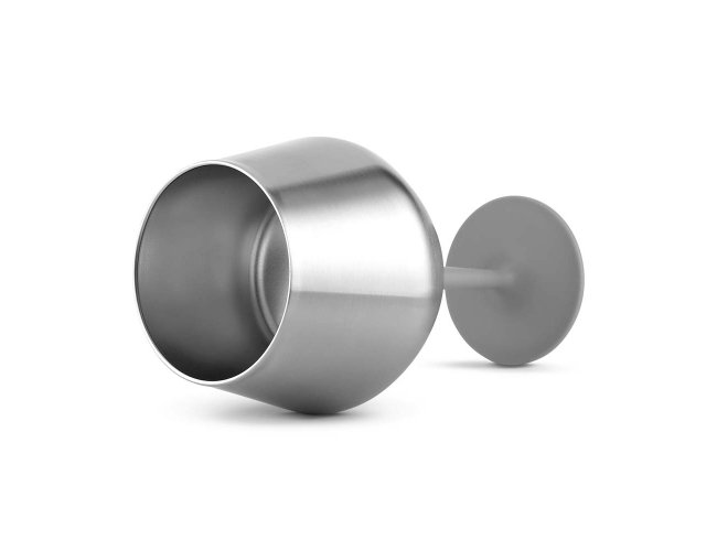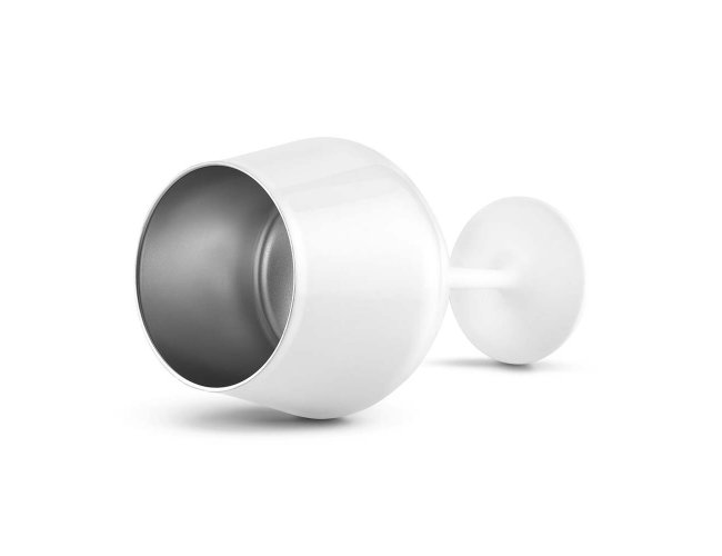 Copo/taça térmico de 350 ml brilhosa, em inox (interno 304 / externo 201), haste removível em plástico PP, discos de borracha para estabilidade.