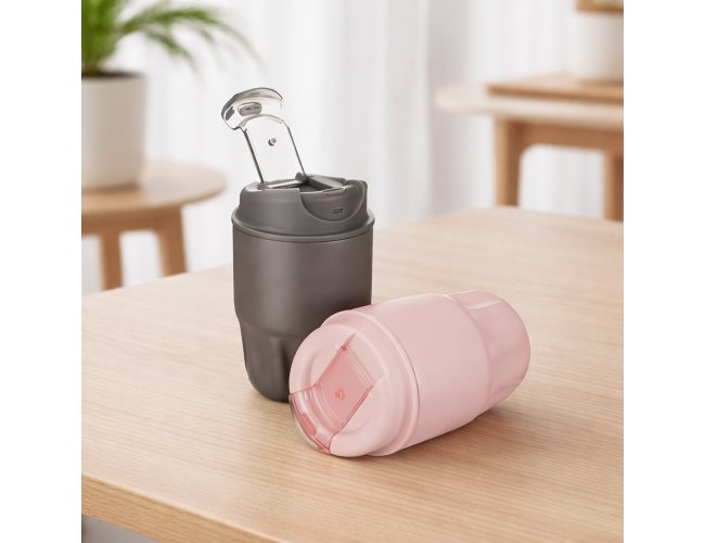 Copo térmico em inox com pintura eletrostática e capacidade para até 250ml. Possui formato ergonômico e base antiderrapante. Conta ainda com tampa rosqueável em plástico com trava de segurança.