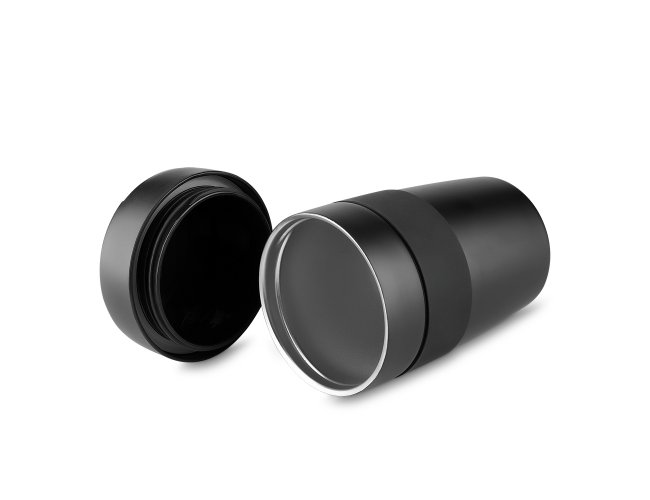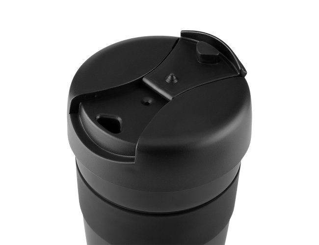 Copo em aço inox com parede dupla isolada a vácuo com capacidade de até 350ml. Conserva temperatura quente ou fria, pegador em silicone, tampa com rosca e anel de silicone para vedação.