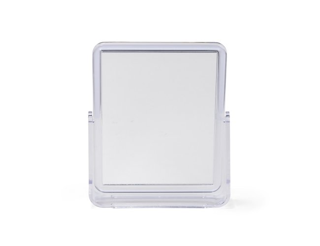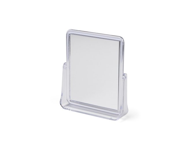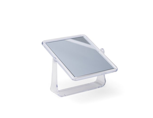 Espelho de mesa retangular giratório com face dupla sem aumento e estrutura em plástico polipropileno (PP) transparente.