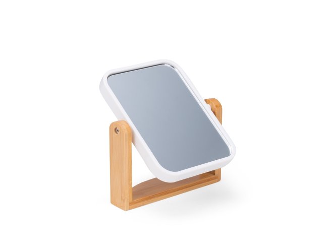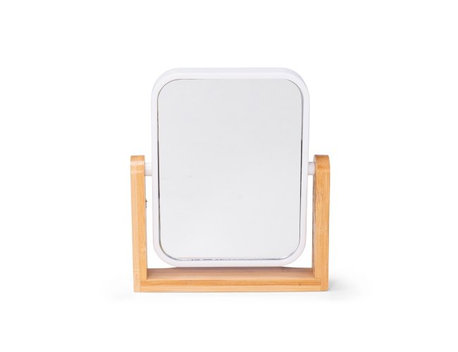 Espelho giratório retangular com base em bambu e moldura em plástico polipropileno (PP).