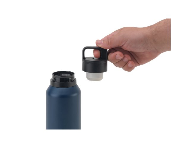 Garrafa em aço inox 91% reciclado com parede dupla isolada a vácuo e parede interna revestida a cobre, características que permitem conservar a temperatura das suas bebidas por um longo período. A tampa em PP é à prova de vazamentos e incorpora um botão que facilita a sua abertura. O acabamento da garrafa em mate confere-lhe um visual mais contemporâneo. Capacidade até 590 mL. Fornecido em caixa presente de papel kraft reciclado. Certificação EU Food Grade.