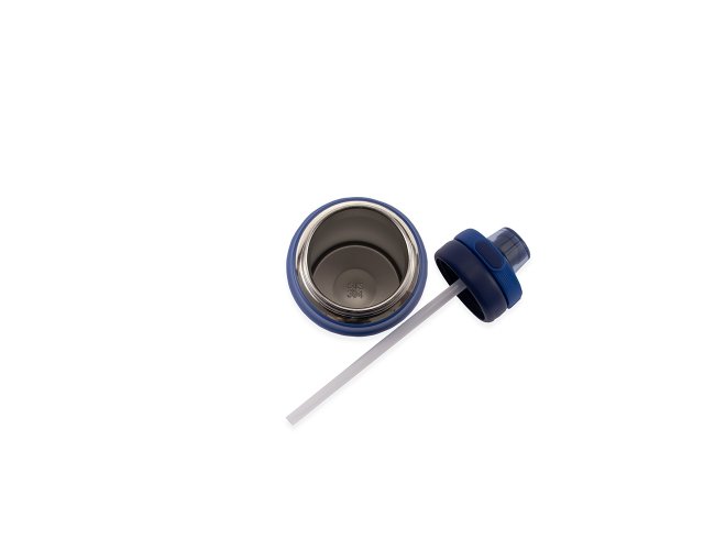 Garrafa térmica em inox com base emborrachada antiderrapante e capacidade máxima de 750ml. Possui estrutura de parede dupla e isolamento a vácuo, permitindo conservar a temperatura de líquidos por mais tempo. Dispõe ainda de tampa plástica com alça móvel e protetor para o bocal acionado por botão. Acompanha um canudo plástico para encaixe no interior da garrafa.