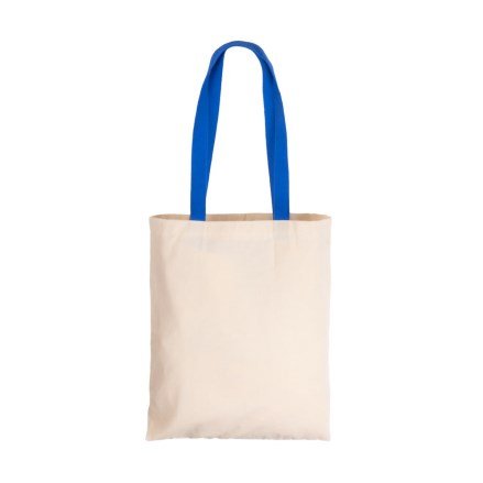 Sacola de Algodão Ecológica Bege com Alça Azul 32x38cm com Alças Costuradas - LG3762.
