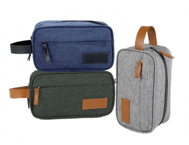 Nécessaire confeccionada em poliéster com detalhes em couro sintético, possui dois compartimentos com zíper, alça para transporte e alça pequena para acesso de chaveiro ou gancho. Tam: 12,3x21,5x12,3cm - XB14937