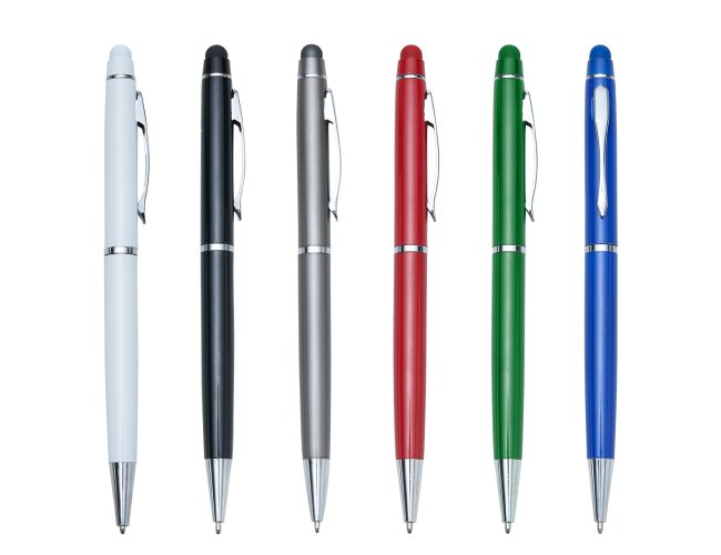 Caneta metal com touch screen, carga esferográfica azul 1.0 mm e acionamento por rotação. Tam: 1,3x14,1cm. - XB18543.