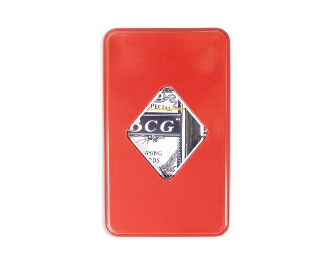 Kit poker composto por um baralho completo com 54 cartas, 100 fichas plásticas divididas em quatro cores diferentes, uma ficha de dealer e quatro dados de seis faces. Acompanha estojo metálico e folheto de regras em inglês.