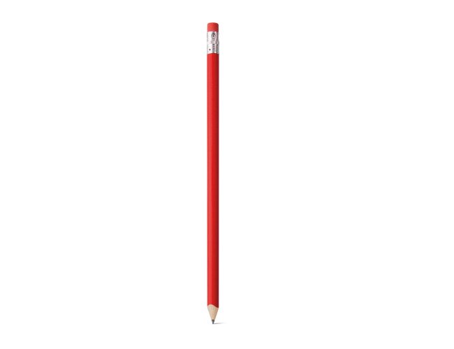 Lápis apontado com borracha. Grau de dureza: HB. Produto certificado de acordo com a portaria Inmetro nº423 de 8/out/2021 e entregue já apontado.