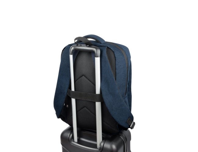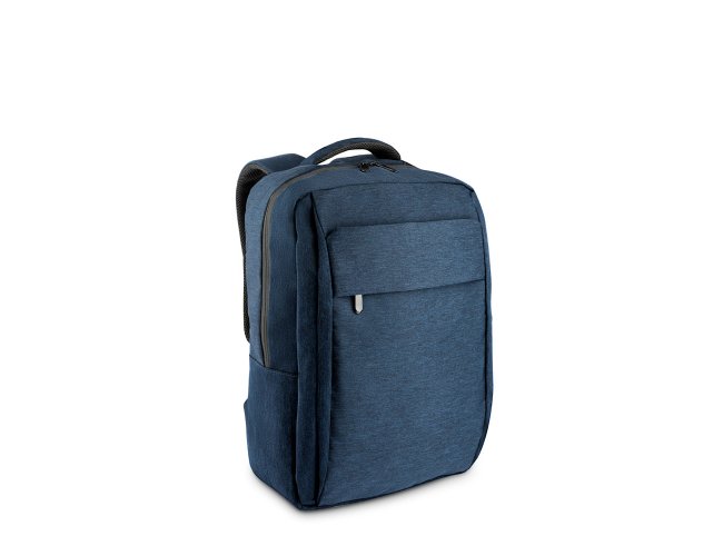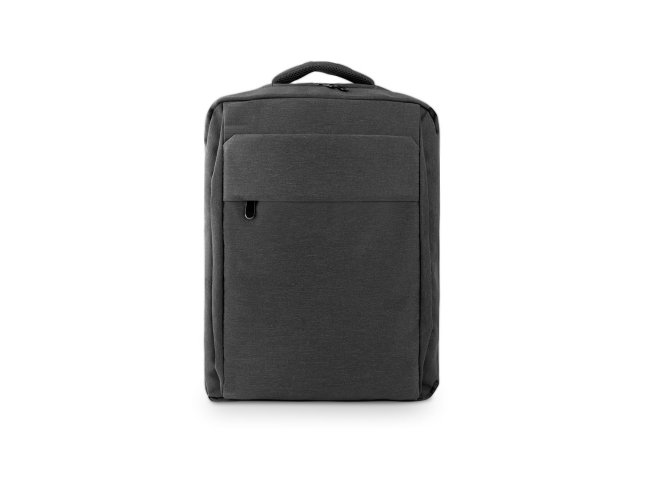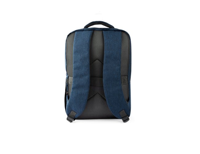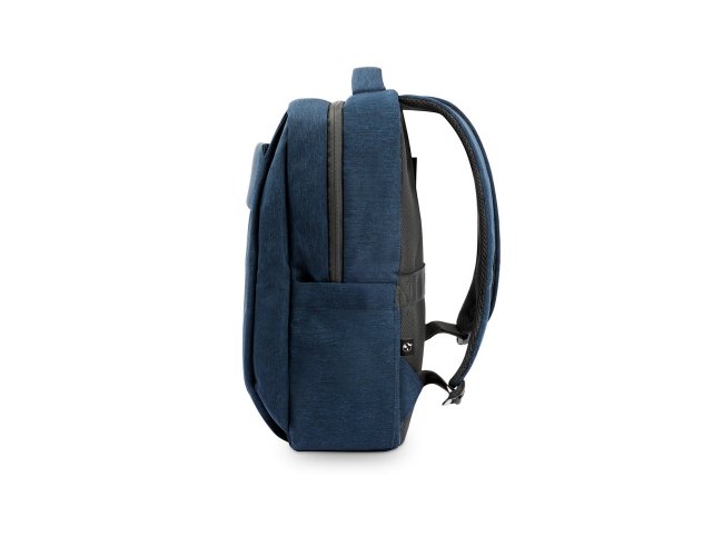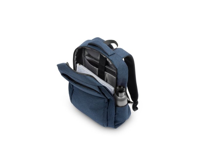 Mochila, totalmente almofadada, para notebook em poliéster reciclado 300D de alta densidade e forro em poliéster reciclado 210D. Possui um compartimento principal para notebook até 15.6", dois bolsos frontais e um bolso lateral para transportar o seu squeeze. A parte posterior incorpora uma alça para trolley em caso de necessidade. Capacidade até 18 L.