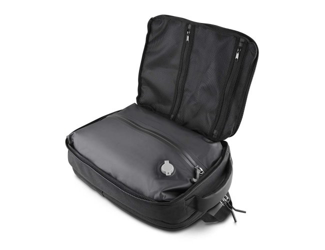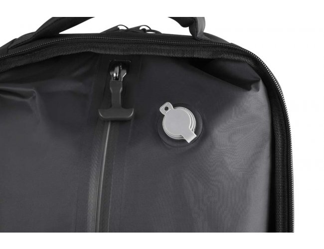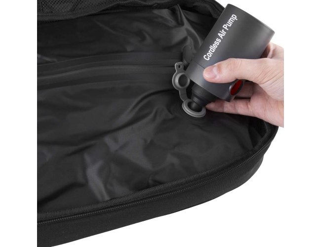 Mochila premium em poliéster 600D com detalhe em PU e interior em poliéster 210D. Conta com compartimento interno a vácuo, acompanha bomba para desinflar, expansor com zíper, compartimento frontal com zíper, compartimento para notebook de até 15,6”, compartimento com zíper nas costas, engate para mala de viagem e alças de mão e ombro acolchoadas.