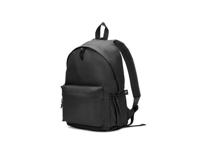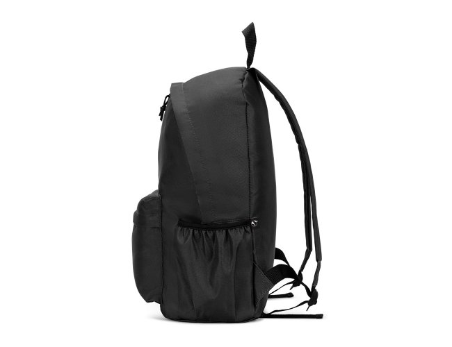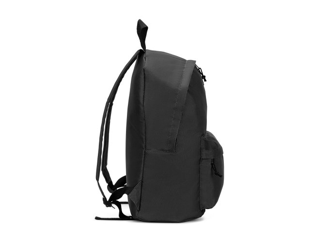 Mochila em poliéster reciclado 600D e forro em poliéster reciclado 210D. Possui um compartimento principal espaçoso, um bolso frontal e um bolso lateral para transportar e guardar o seu squeeze. A pega superior é em webbing. Capacidade até 18 L.