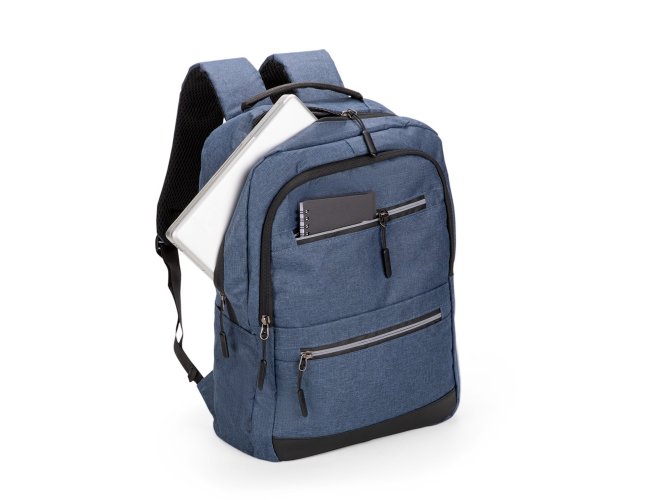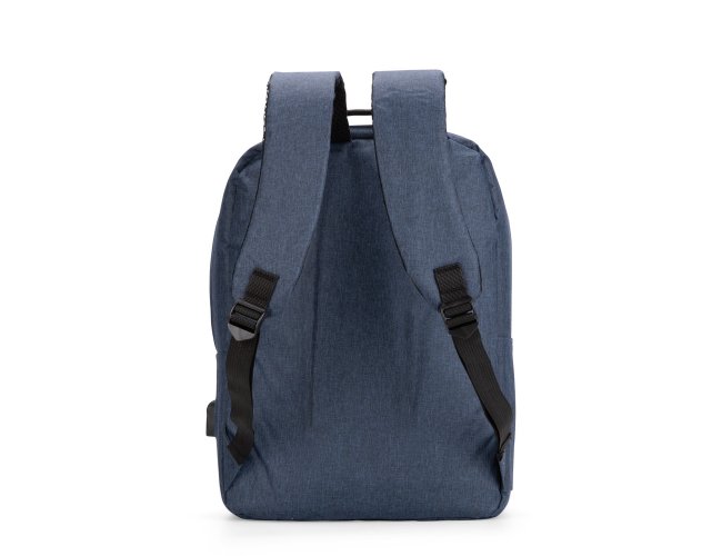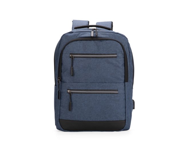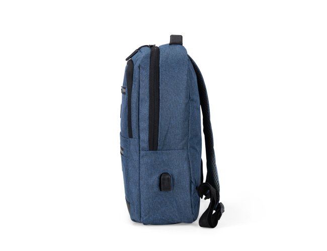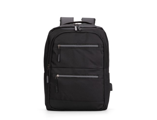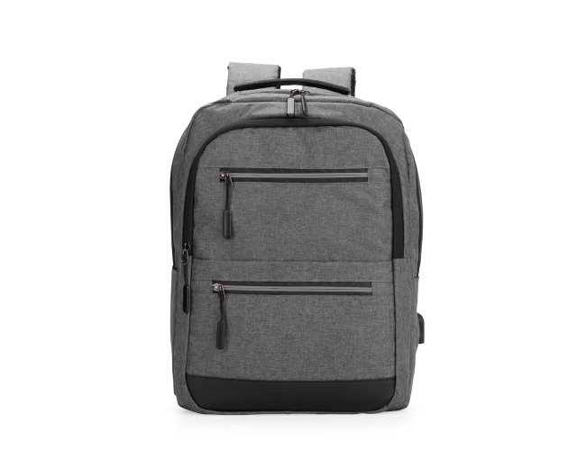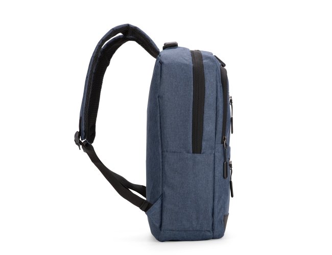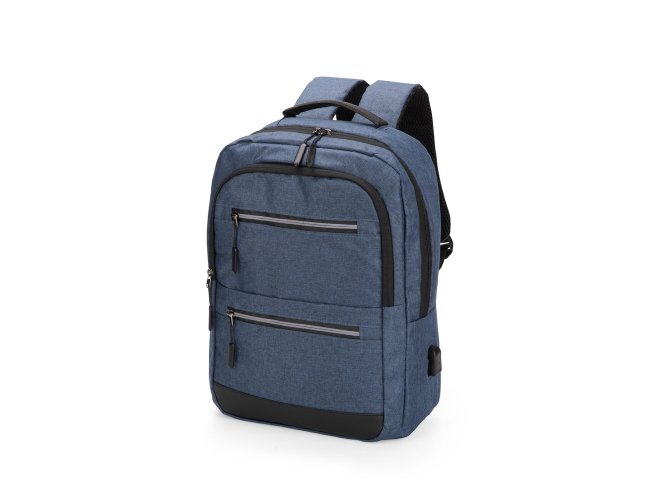 Mochila em tecido Oxford impermeável com detalhes em couro sintético e capacidade máxima de 18 litros. Possui quatro bolsos pequenos e divisória acolchoada para notebook de até 15,6 polegadas no compartimento principal. Apresenta compartimento frontal e dois bolsos em tamanhos diferentes com faixas refletivas na região dos zíperes, além de um bolso e um adaptador USB posicionados em laterais opostas. dispõe de alça superior de mão e duas alças de ombro, estas com revestimento em tecido respirável. Obs.: A posição do adaptador USB pode variar conforme o lote do produto.
