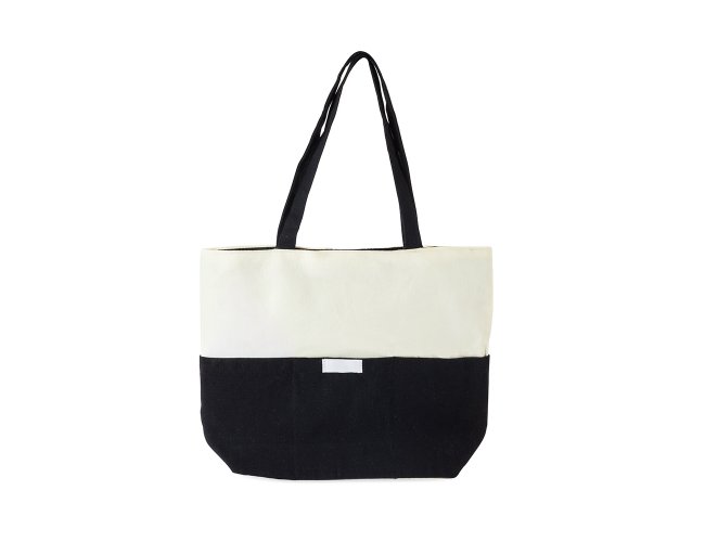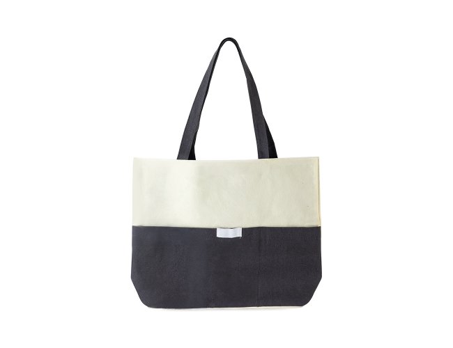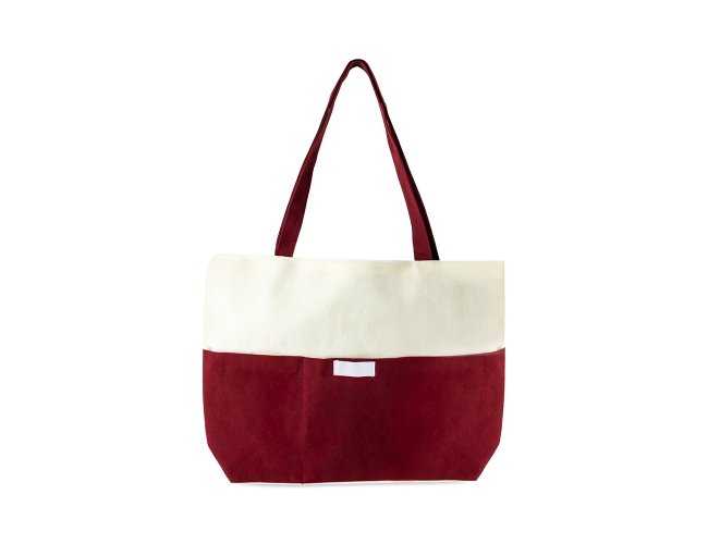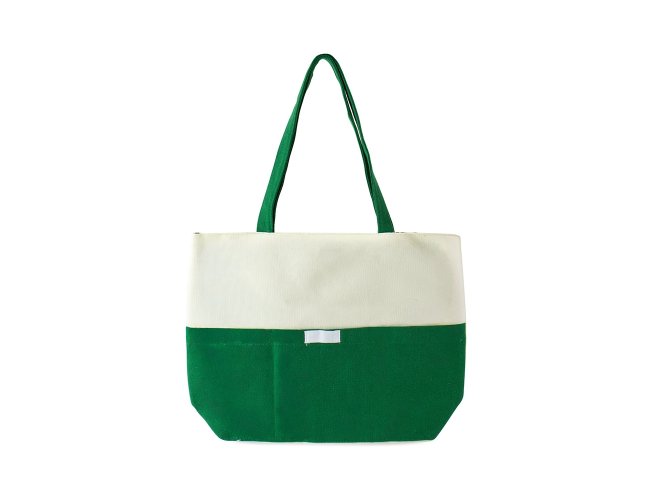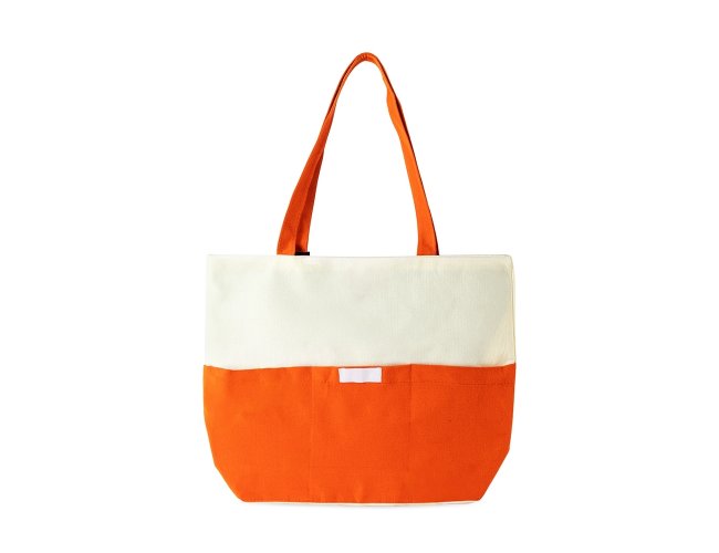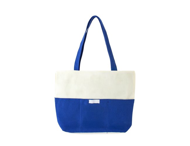 Sacola confeccionada em lona 356g/m² com revestimento interno em poliéster, bolso frontal aberto e duas alças com costura interna.