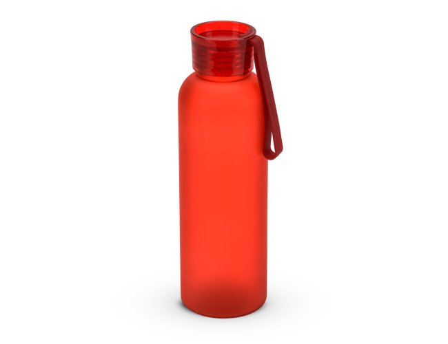 Squeeze esportiva em PET 100% reciclado, com acabamento fosco. A tampa em PS, à prova de vazamentos, possui fita em silicone que facilita o transporte. Capacidade até 600 mL. Certificação EU Food Grade.