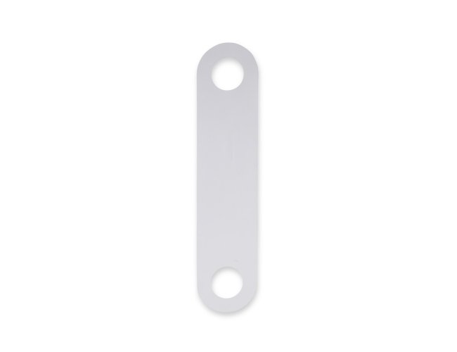 Suporte para celular em PVC com aberturas para encaixe na parede durante a recarga do aparelho.